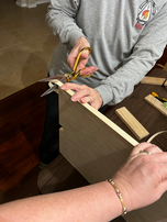 I used 1/2" thick plywood to keep the stand lighter in weight. I Laid out my wood, did all the measurements, and cut all the pieces at one time. After all cuts were done, I made note of what edges needed to be banded, and only banded the edges that would show once the stand was assembled. I Used 1/2" iron-on wood banding to finish the edges.